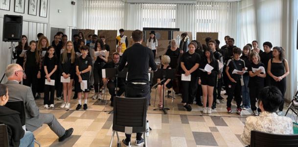 Les 70 élèves de la classe CHAM augmentés de 8 chanteurs, de l’ensemble vocal Syllepse, du (…)